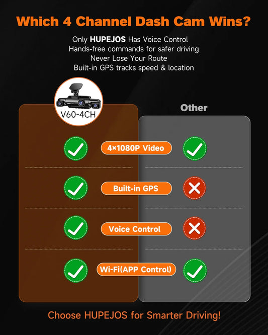 GPS Dash Cam Front and Rear Inside,360° Voice Control 4K Dashcam for Car , 4 Channel 1080P Dash Camera APP&WIFI Supported,Night Vision FHD Car Camera with 64GB Card, WDR, Parking Mode